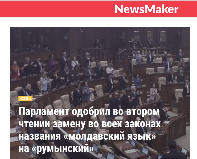Парламент Молдови ухвалив у остаточному читанні законопроект, згідно з яким "молдавська мова" фактично перестане існувати і буде перейменована у всіх документах на "румунську мову".