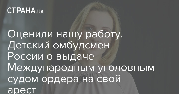 Уповноважений за президента РФ з прав дитини Марія Львова-Бєлова прокоментувала видачу Міжнародним кримінальним судом ордера на свій арешт. Вона назвала це оцінкою роботи з допомоги дітям громадян Росії, які опинилися у зонах воєнних дій.