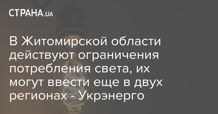 На Житомирщині діють обмеження споживання світла, їх можуть запровадити ще у двох регіонах - Укренерго