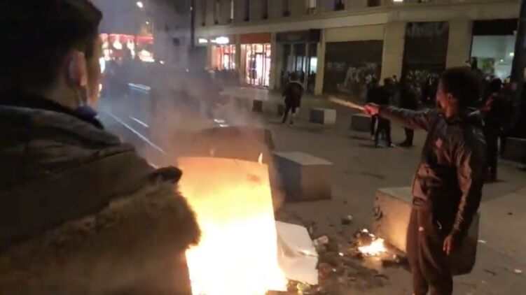 На опублікованих відео видно, як маніфестанти знову палять сміття і запускають у бік силовиків феєрверки, ті у відповідь застосовують кийки та сльозогінний газ.