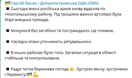 07.40 Вночі РФ вдарила по Марганецькій громаді Нікопольського району Дніпропетровської області. Обійшлося без жертв.