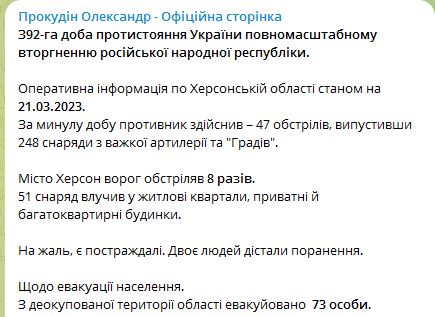 08.10 У Херсонській області минулої доби противник здійснив - 47 обстрілів, випустивши 248 снарядів з важкої артилерії та "Градів".