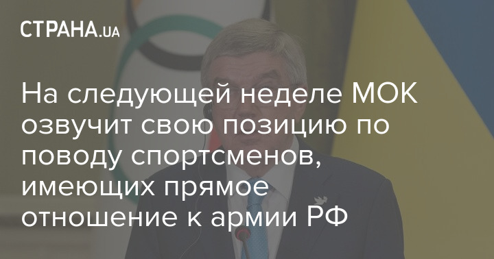 МОК озвучить свою позицію щодо спортсменів, які мають пряме відношення до армії РФ, 28 березня на засіданні свого виконкому, повідомив голова Комітету Томас Бах.