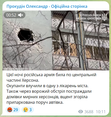 РФ уночі обстріляла центр Херсона. Постраждали лікарня та житлові будинки. Відео