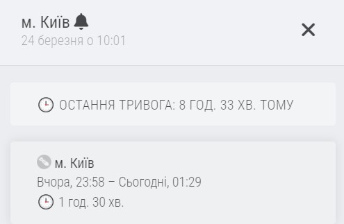 Зазначимо, що повітряна тривога у Києві закінчилася о 01:29.