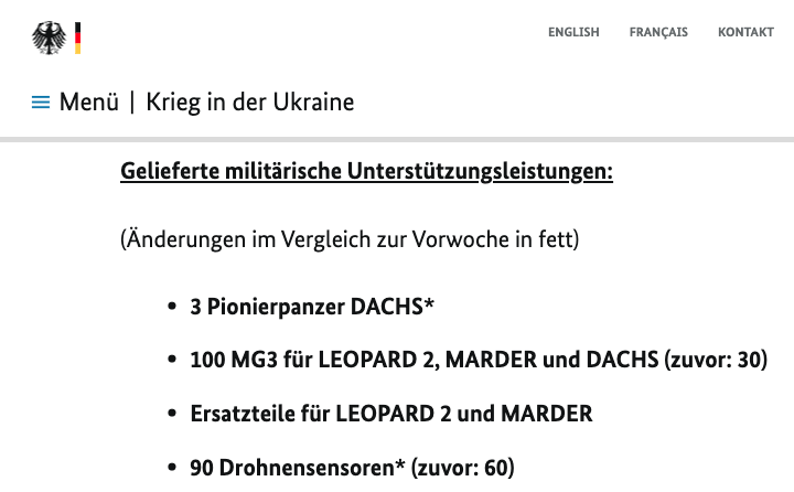 Також Україна отримала 70 кулеметів M-G3 для німецьких танків та БМП та 30 датчиків для виявлення ворожих дронів.