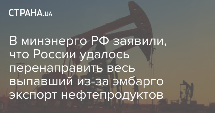 Росії вдалося перенаправити весь експорт нафтопродуктів, який випав через запроваджений Європейським союзом ембарго.