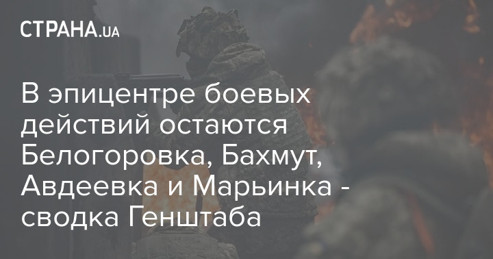 Вранці у четвер, 30 березня, Генштаб ЗСУ опублікував актуальне зведення про те, що відбувається на фронті. Повідомляється, що в епіцентрі бойових дій залишаються Білогорівка, Бахмут, Авдіївка та Мар'їнка.