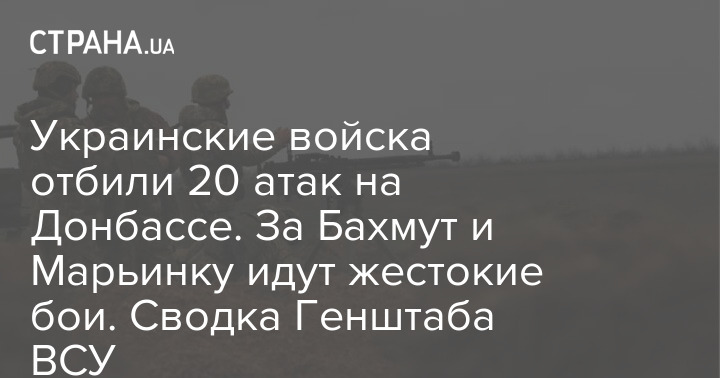 В Генеральному штабі Збройних сил України опублікували оперативне зведення з фронту станом на 18.00 13 квітня. Повідомляється, що українські війська відбили 20 атак на чотирьох напрямках, за Мар'їнку та Бахмут йдуть запеклі бої.