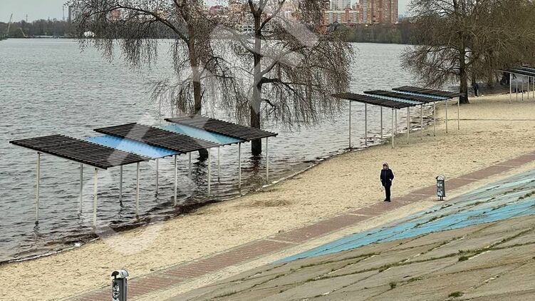 Унаслідок підтоплення практично повністю під водою опинився пляж на Оболонській набережній у Києві.