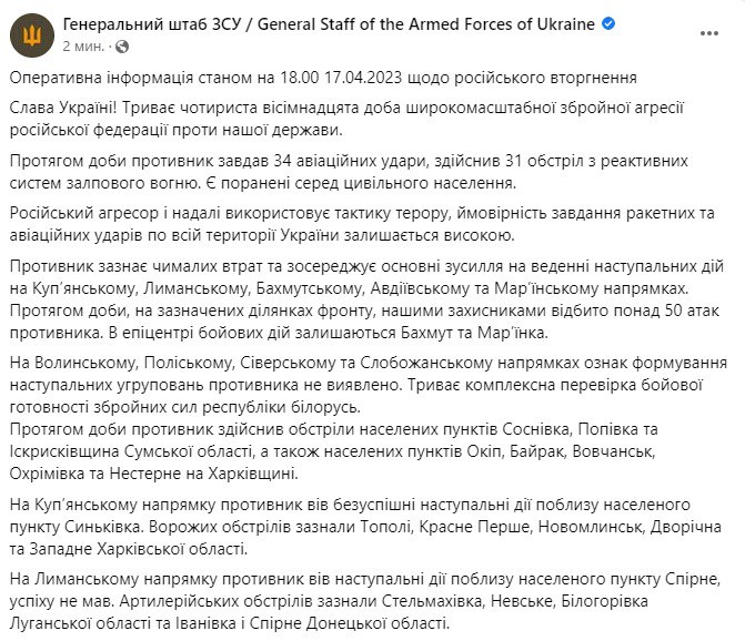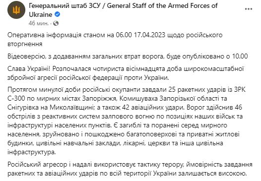 Докладніше про те, що відбувалося вчора – читайте у підсумках за 16 квітня.