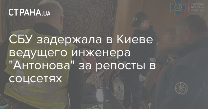 СБУ затримала у Києві провідного інженера держпідприємства авіапромисловості "Антонов". Співробітника підрозділу авіаційної безпеки підозрюють в інформаційній роботі РФ.
