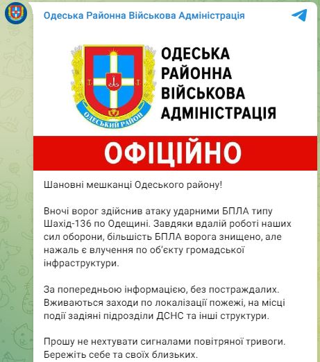 07.00 Вночі війська РФ вдарили "Шахедами" по об'єкту інфраструктури на Одещині, виникла пожежа. Обійшлося без постраждалих.
