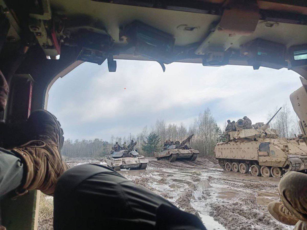 10.48 З'явилося фото бронеколони ЗСУ, де видно американські БМП Bradley, а також, зважаючи на все - словенські танки М-55S.