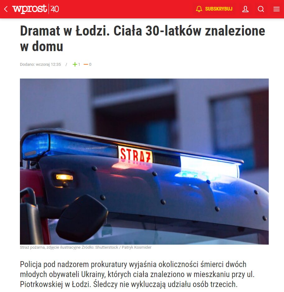 10.56 У Польщі знайшли мертвими двох українців – 36-річного чоловіка та 31-річну жінку.