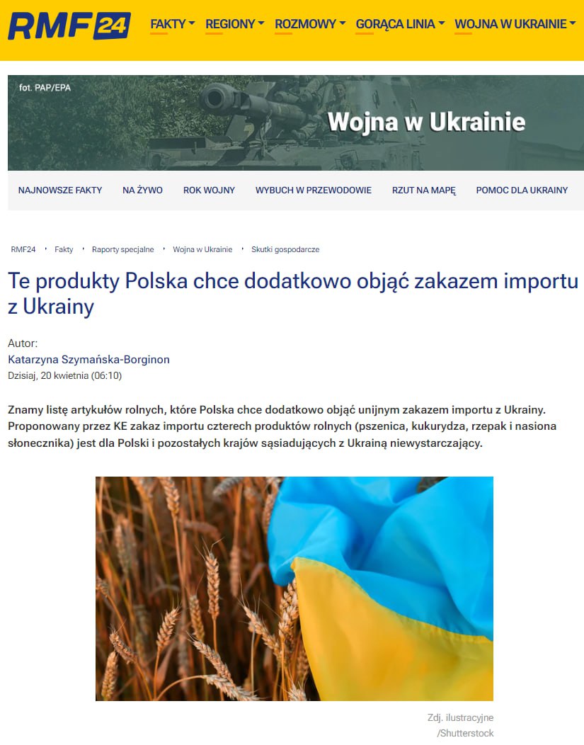 Нагадаємо, під заборону імпорту до Польщі потрапила сільгосппродукція, а також свіжа та перероблена плодоовочева продукція, фрукти, заморожені ягоди.