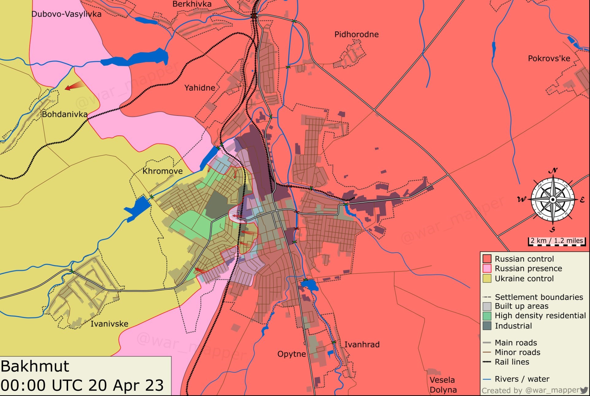 Якщо справді російські підрозділи мають просування до Хромова, це створює серйозну загрозу комунікаціям українських військ у місті. І, крім того, означає, що росіяни відновили тиск на фланги на захід від Бахмута, прагнучи оточити місто. Ряд пабліків повідомляє про запеклі бої і на підступах до другої траси із заходу в місто - з Костянтинівки. Але офіційно це не підтверджено.