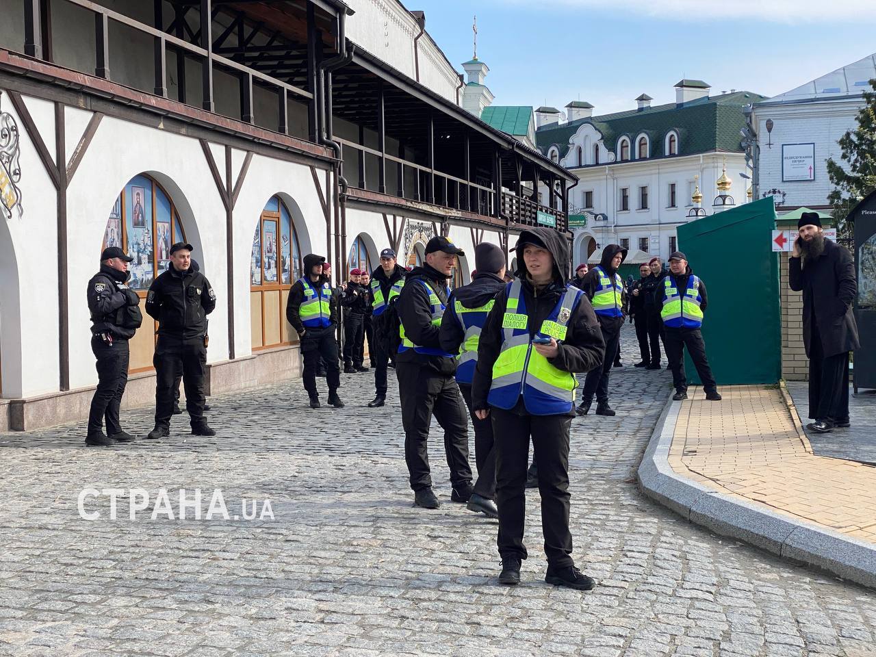 Дуже багато поліції. На території Лаври пропускають лише за паспортами, оглядають особисті речі та перевіряють їх металошукачем. Також зачинено центральні ворота.