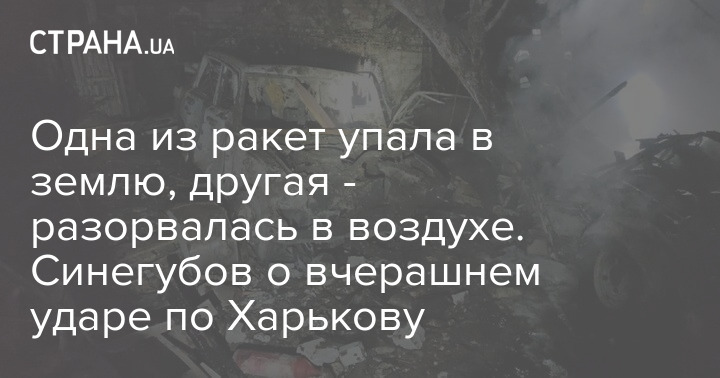 Одна з ракет упала в землю, інша – розірвалася у повітрі. Синегубов про вчорашній удар по Харкову