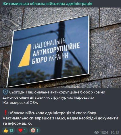 11.18 НАБУ проводить слідчі дії до структурних підрозділів Житомирської ОВВ.