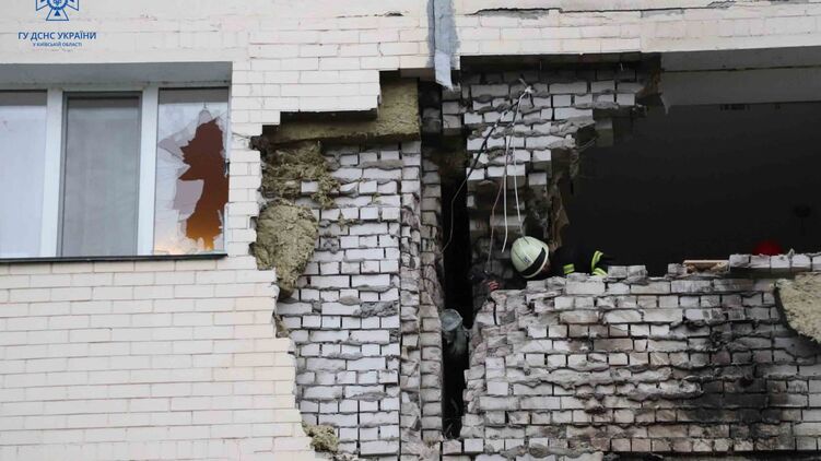 "Продовжуються роботи з ліквідації влучення ракет у квартиру на 5 поверсі десятиповерхового житлового будинку в місті Українка Обухівського району", - йдеться у повідомленні.