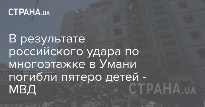 Внаслідок російського удару по багатоповерхівці в Умані загинули п'ятеро дітей - МВС