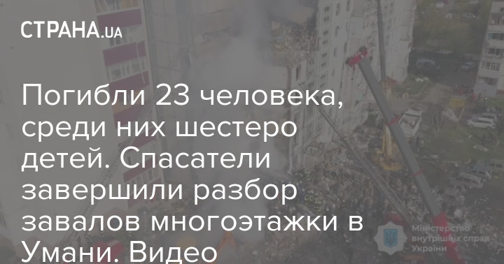 Загинули 23 особи, серед них шестеро дітей. Рятувальники завершили розбір завалів багатоповерхівки в Умані. Відео
