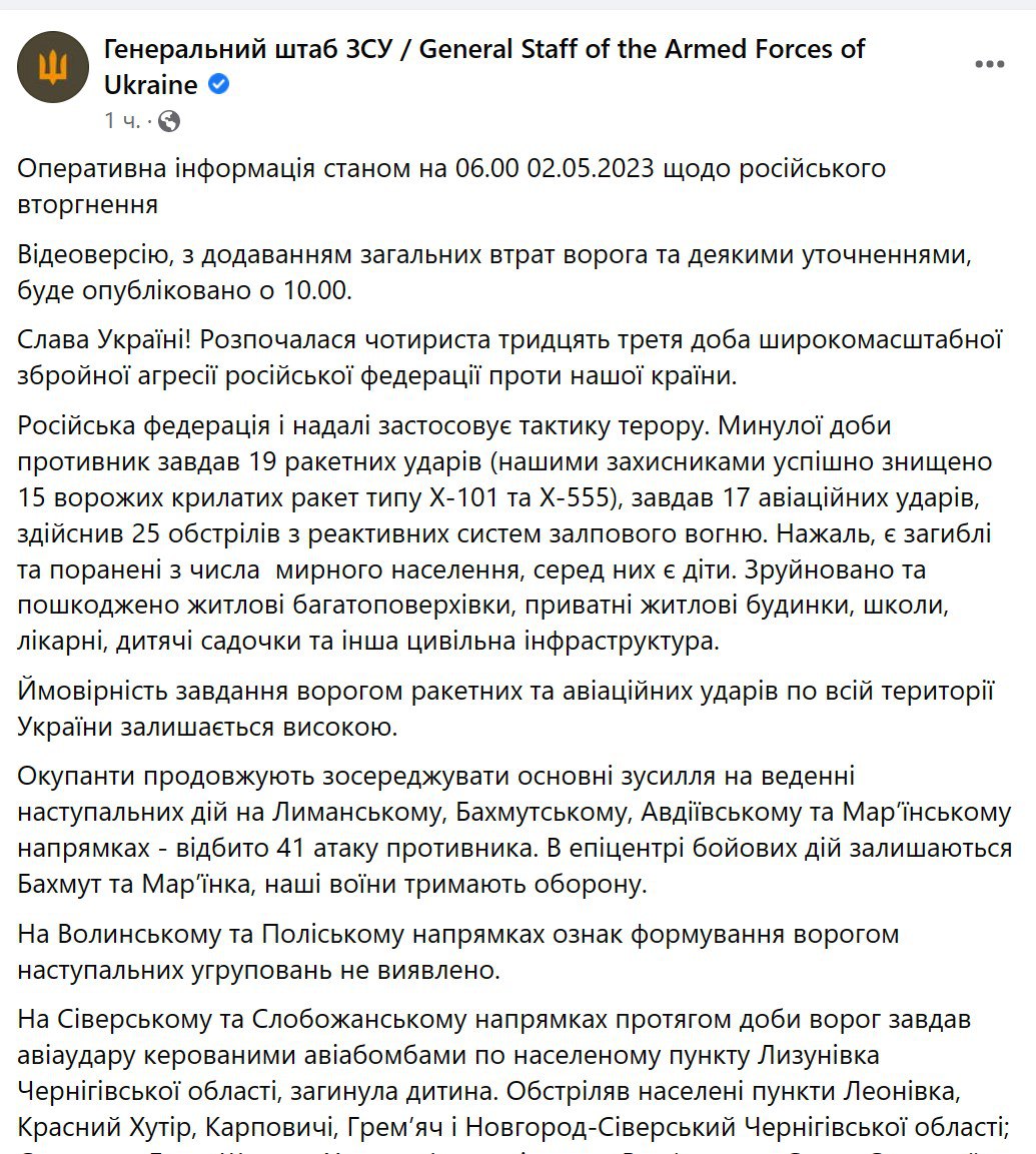Докладніше про те, що відбувалося вчора – читайте у підсумках за 1 травня.