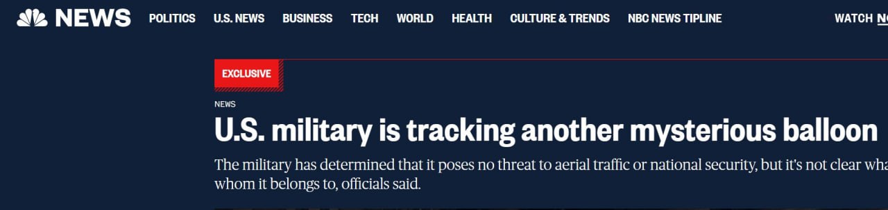 08.14 Над територією США летить чергова невідома куля, пише телеканал NBC News із посиланням на трьох офіційних осіб.