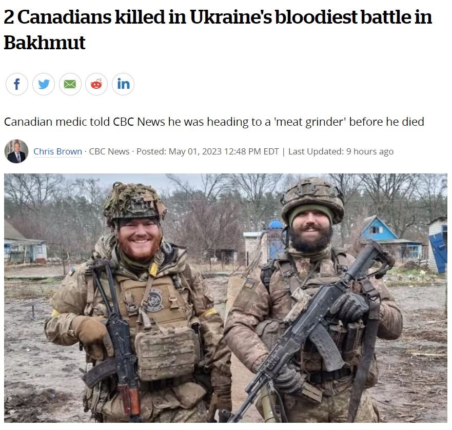 09.25 У боях за дорогу постачання Бахмута загинули колишні канадські військові, які вступили добровольцями до Міжнародного легіону, повідомляє CBC News з посиланням на командира військовослужбовців.