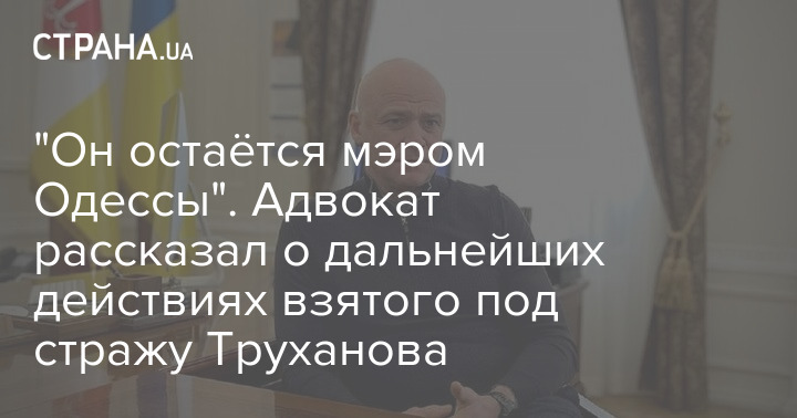 Олександр Лисак, адвокат Геннадія Труханова, якого сьогодні взяли під варту, у коментарі нашому виданню заявив, що його підзахисний залишається мером Одеси і вийде з в'язниці або за рішенням апеляції, або після внесення застави.