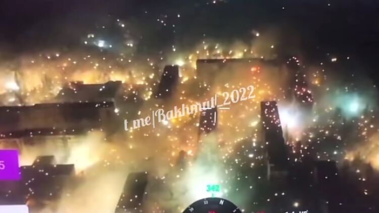 Квартали у вогні. Опубліковано апокаліптичне відео обстрілу Бахмута запальними снарядами