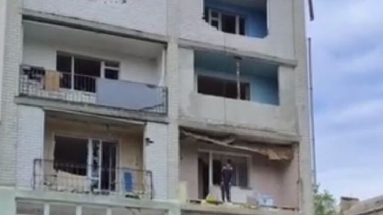 На кадрах видно пошкоджений фасад житлової п'ятиповерхівки та квартири мешканців.