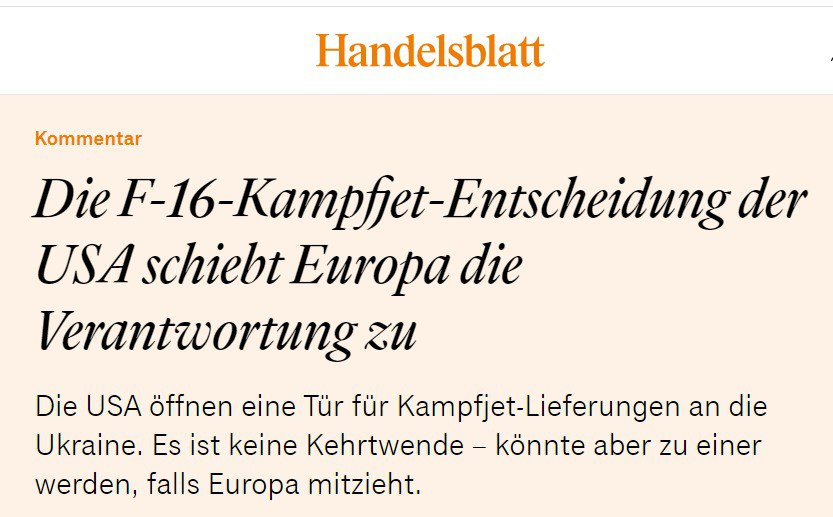 США перекладають на Європу відповідальність за відправку Україні винищувачів F-16 - Handelsblatt