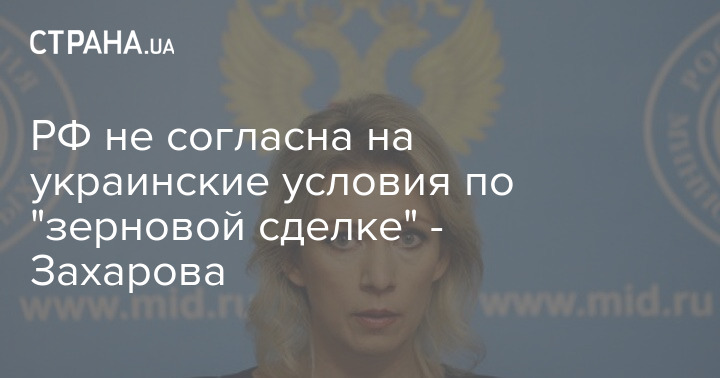 РФ не згодна на українські умови щодо "зернової угоди" - Захарова