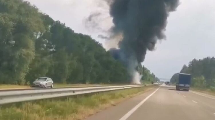 Вдень у четвер, 25 травня, на трасі Бориспіль-Яготин перекинувся бензовоз, на місці аварії почалася пожежа.