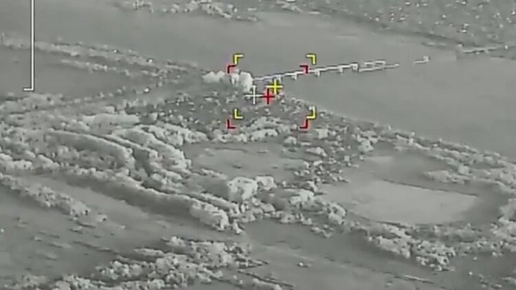 Скріншот відео ракетного удару по Антонівському мосту