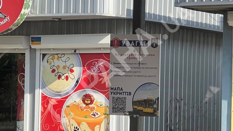 В Києві на зупинках з'явилися таблички з інструкцією, як знайти укриття під час повітряної тривоги