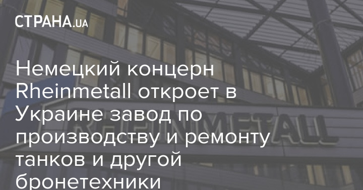 Німецький концерн Rheinmetall у найближчі три місяці відкриє в Україні завод із виробництва та ремонту танків та іншої бронетехніки.