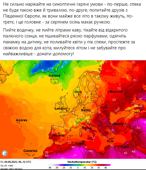 Температура повітря почне знижуватись із понеділка, 7 серпня. На сході України спека ослабне у вівторок-середу наступного тижня.