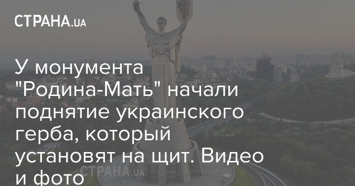 Біля монумента "Батьківщина-Мати" розпочали підняття українського герба, який встановлять на щит. Відео та фото