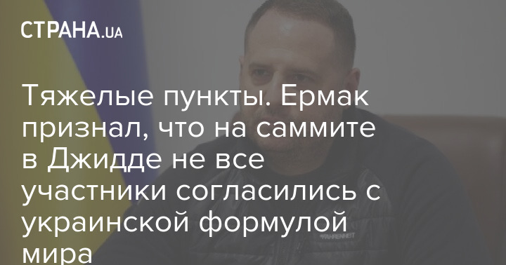 Тяжкі пункти. Єрмак визнав, що на саміті у Джідді не всі учасники погодилися з українською формулою світу
