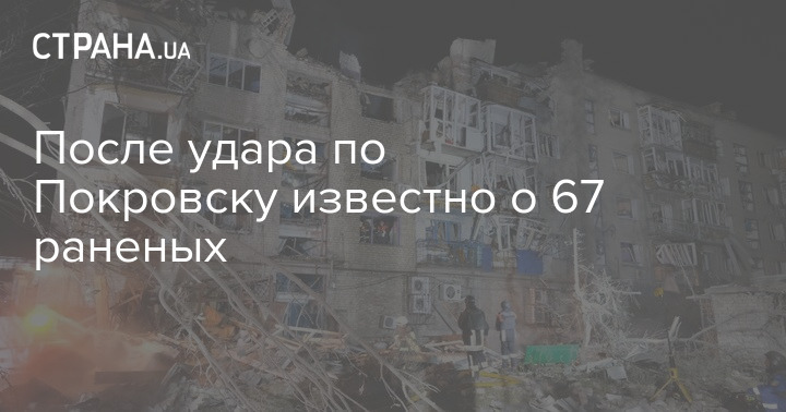 Цього ранку відомо про 67 поранених після удару по Покровську в Донецькій області.