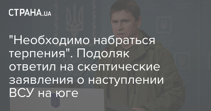 Радник Офісу президента Михайло Подоляк відповів на скептичні заяви щодо відсутності суттєвих успіхів у настання ЗСУ на півдні. Він закликав не забувати, що до вторгнення в Україну російську армію називали "другою армією у світі" і "навіть не уявляли, що проти неї можна ефективно воювати".