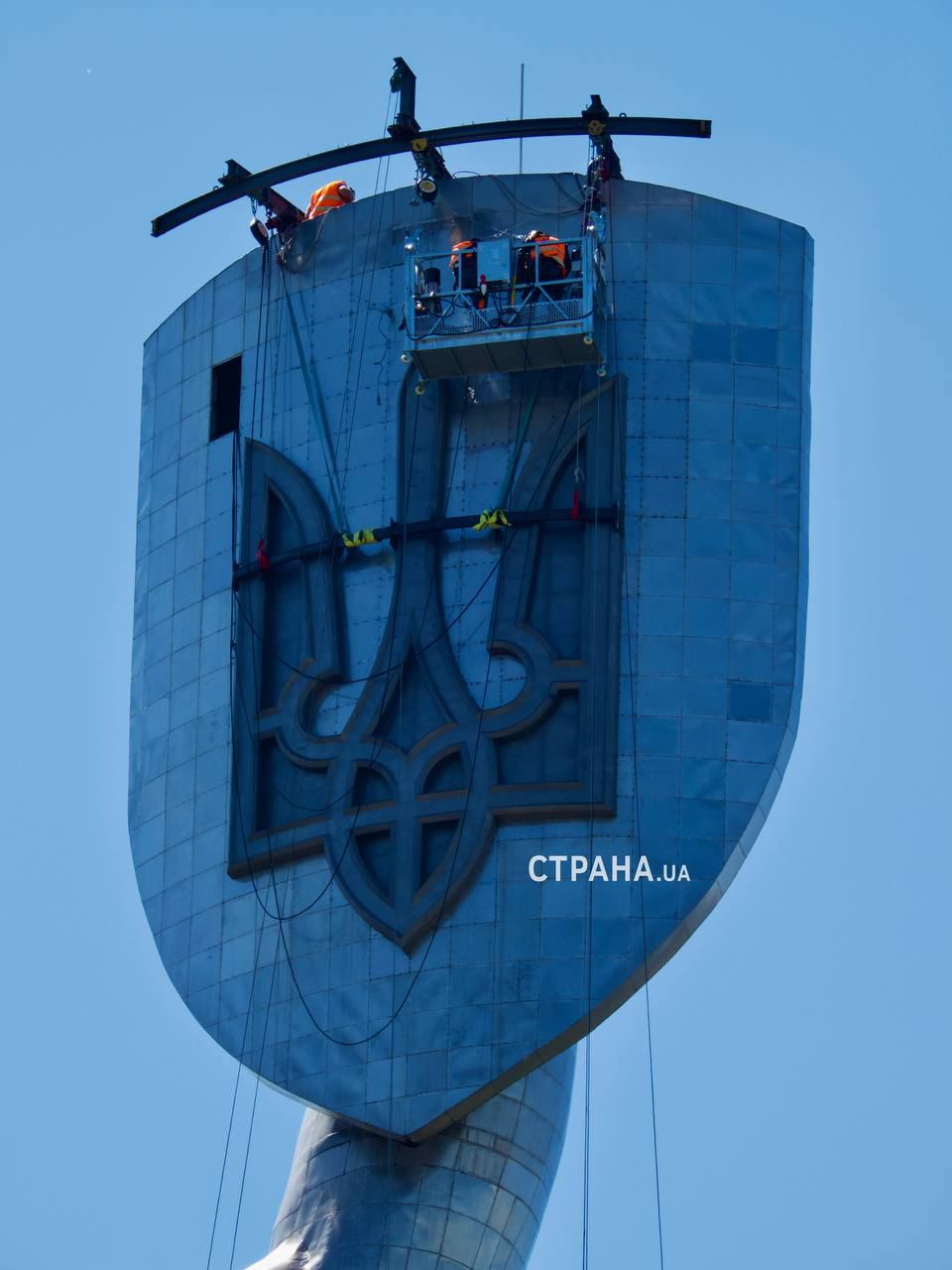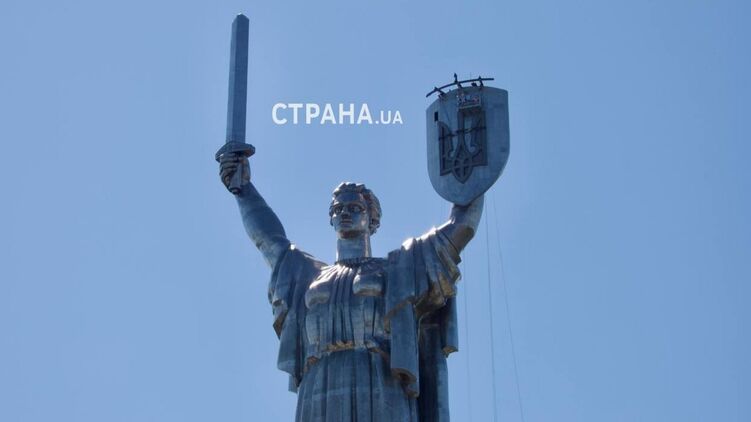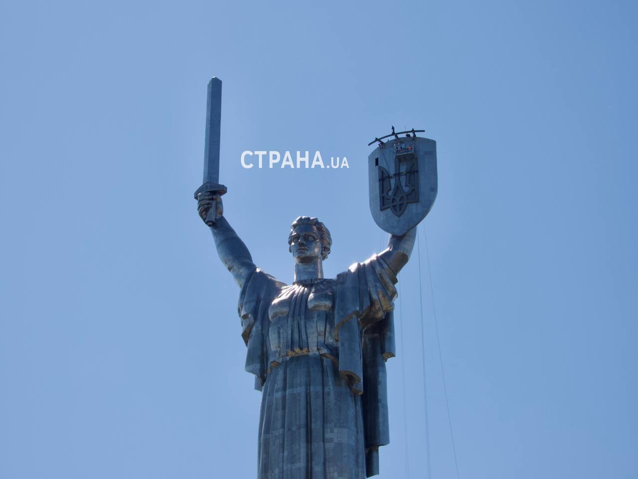 Станом на понеділок, 14 серпня, монтаж тризуба на монументі Батьківщина-мати завершено.