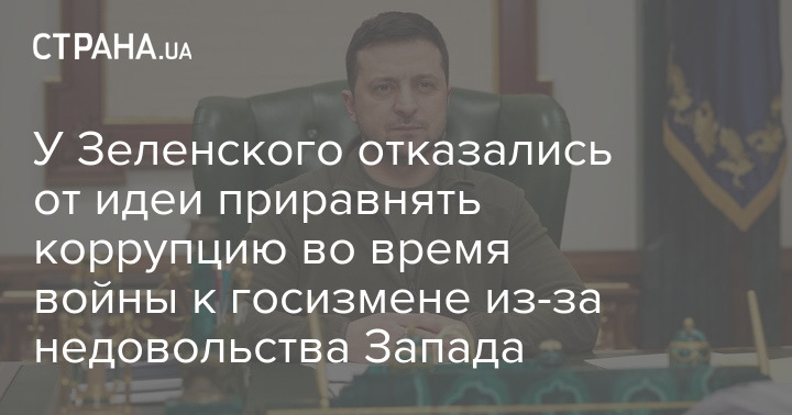 В Офісі президента поки що відмовилися від ідеї прирівняти корупцію під час війни до державної зради після негативної реакції Заходу.