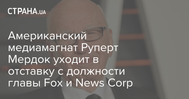 Американський медіамагнат, 92-річний Руперт Мердок оголосив, що йде з посади голови Fox and News Corp.