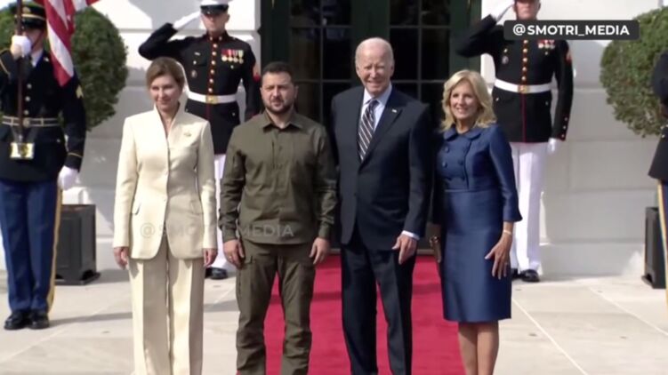 Перед будинком Білого дому Джо Байден разом зі своєю дружиною Джилл Байден зустрів Володимира та Олену Зеленських. Після чого вони потиснули один одному руки, зробили кілька спільних фотографій та попрямували до президентської резиденції.