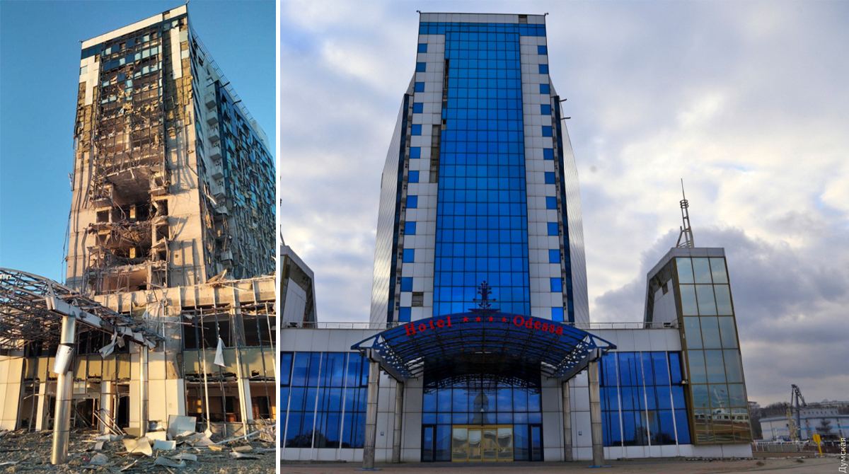 З'явилися фото готелю "Одеса" до та після удару РФ