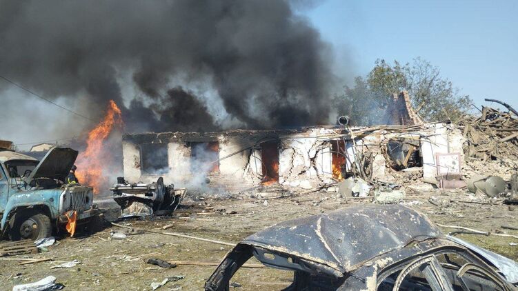 З'явилися фото наслідків авіаудару ЖЕКу в Бериславі Херсонської області 25 вересня.